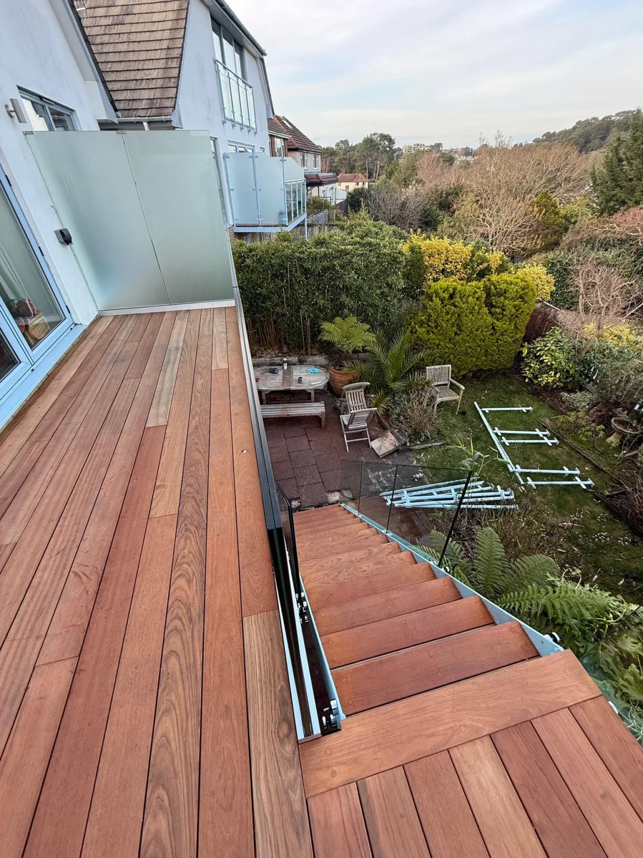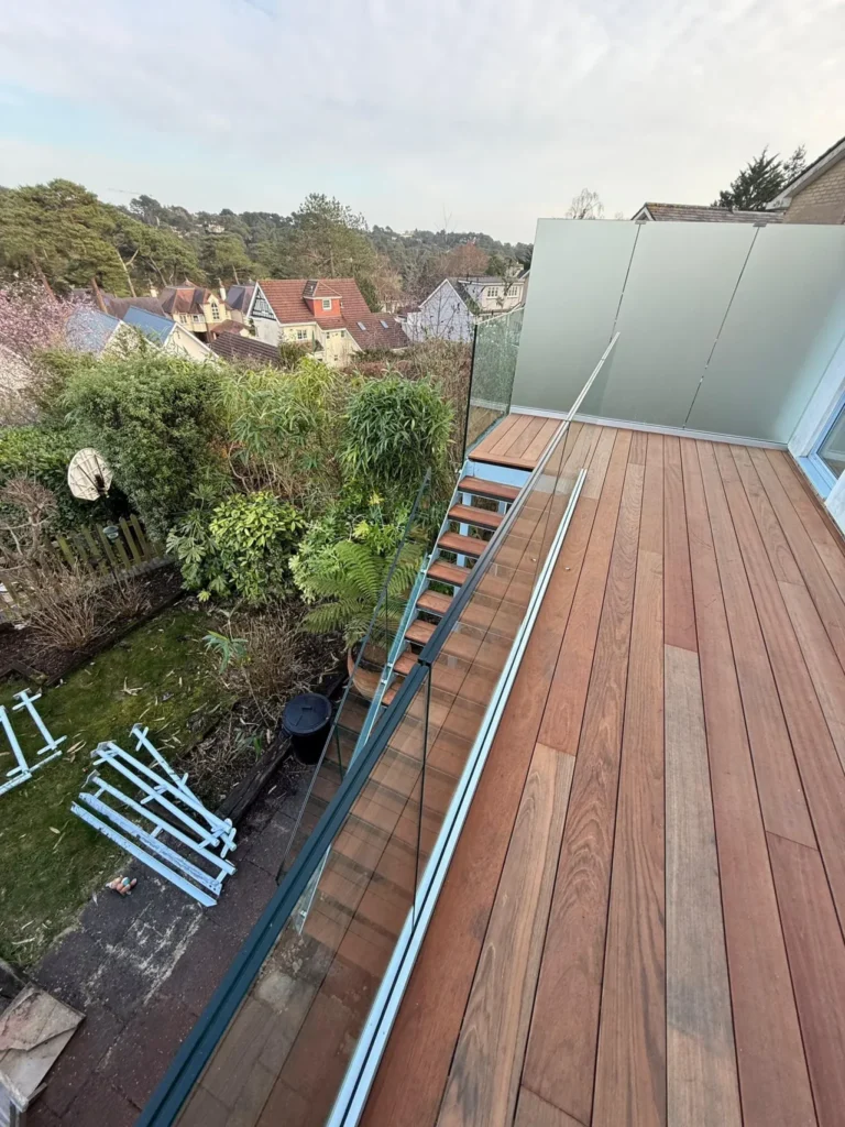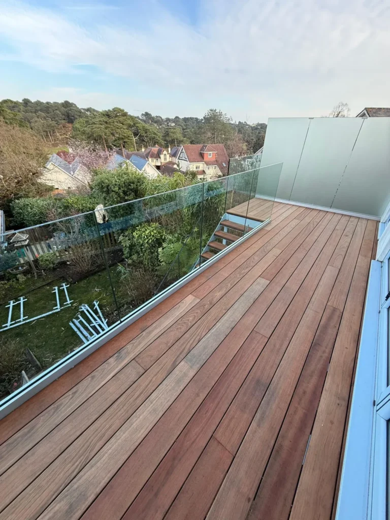 We recently completed a striking raised balcony decking project for a family home in Lilliput, Poole, using premium Jatoba hardwood decking boards.